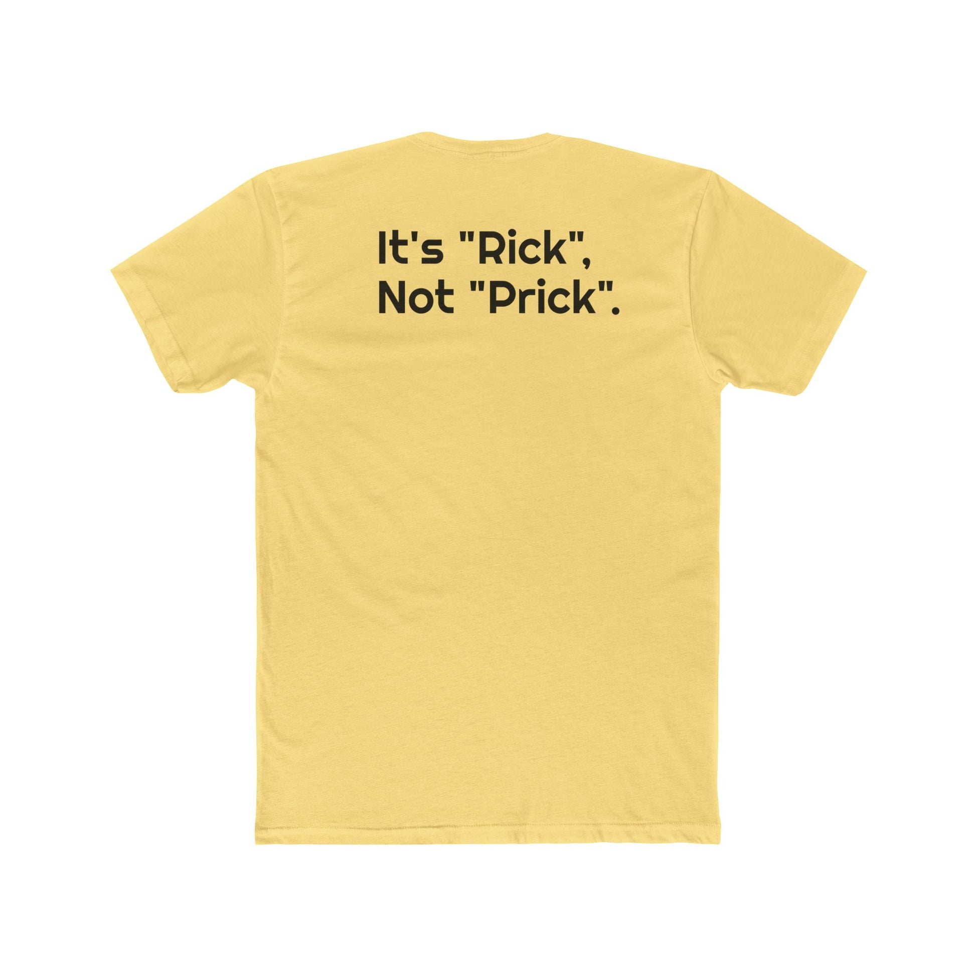 This T-Shirt is perfect for guys named Rick who want to clarify their name is 'Rick', and not 'Prick'. It offers a comfortable fit with a classic design, making it suitable for casual wear or to accessorize for semi-formal events. This T-Shirt is relevant for Rick's or anyone who wants to avoid any 'Prick' misunderstandings.