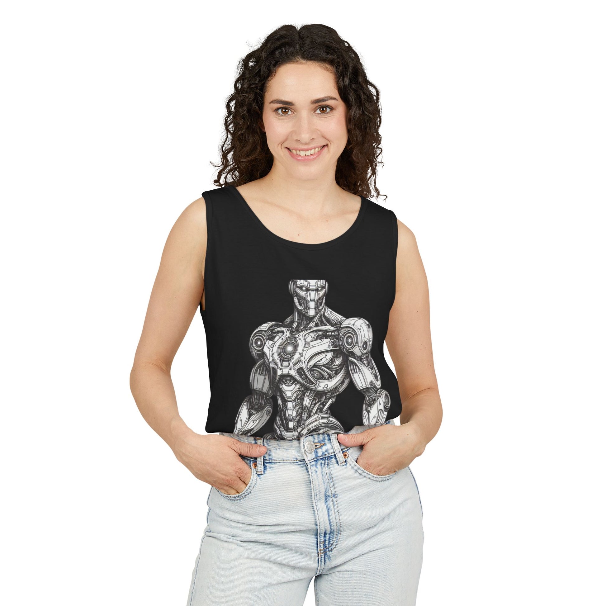 Robot Design Unisex Tank Top, Casual Summer Wear, Gift for Tech Lovers, Gym Apparel, Graphic Tee Alternative