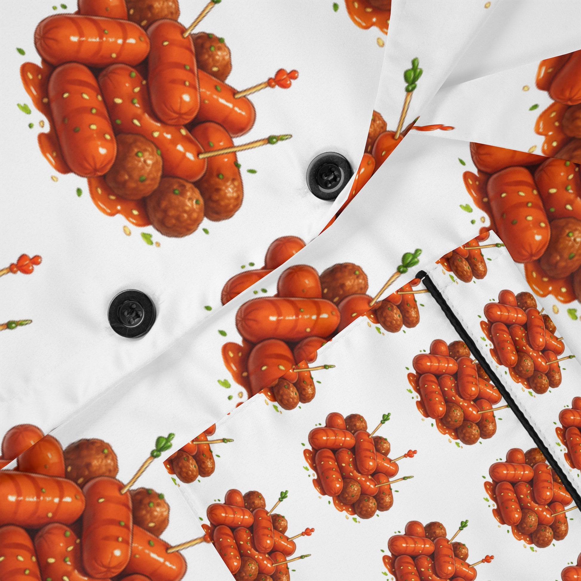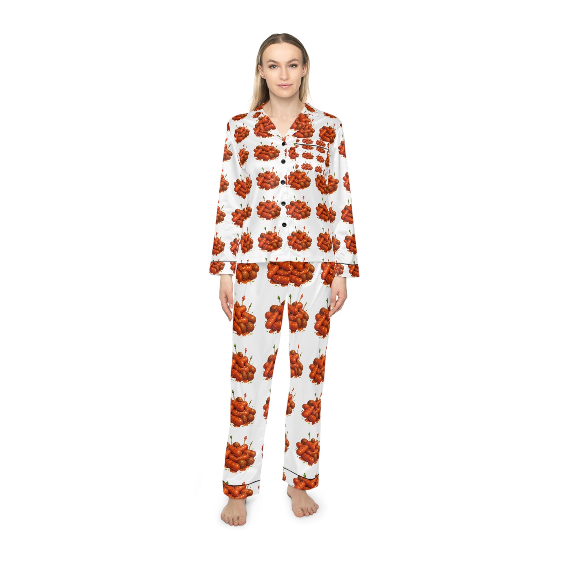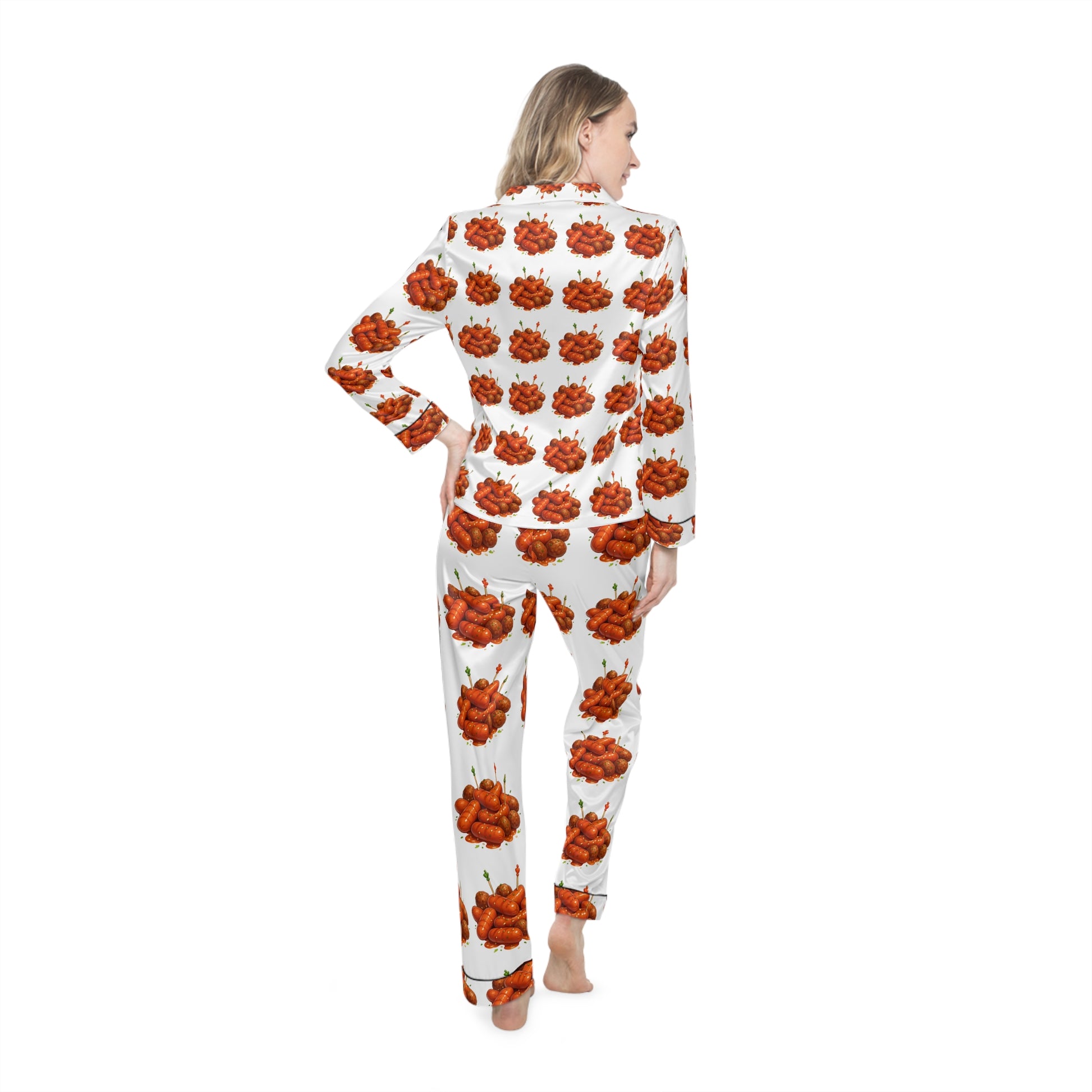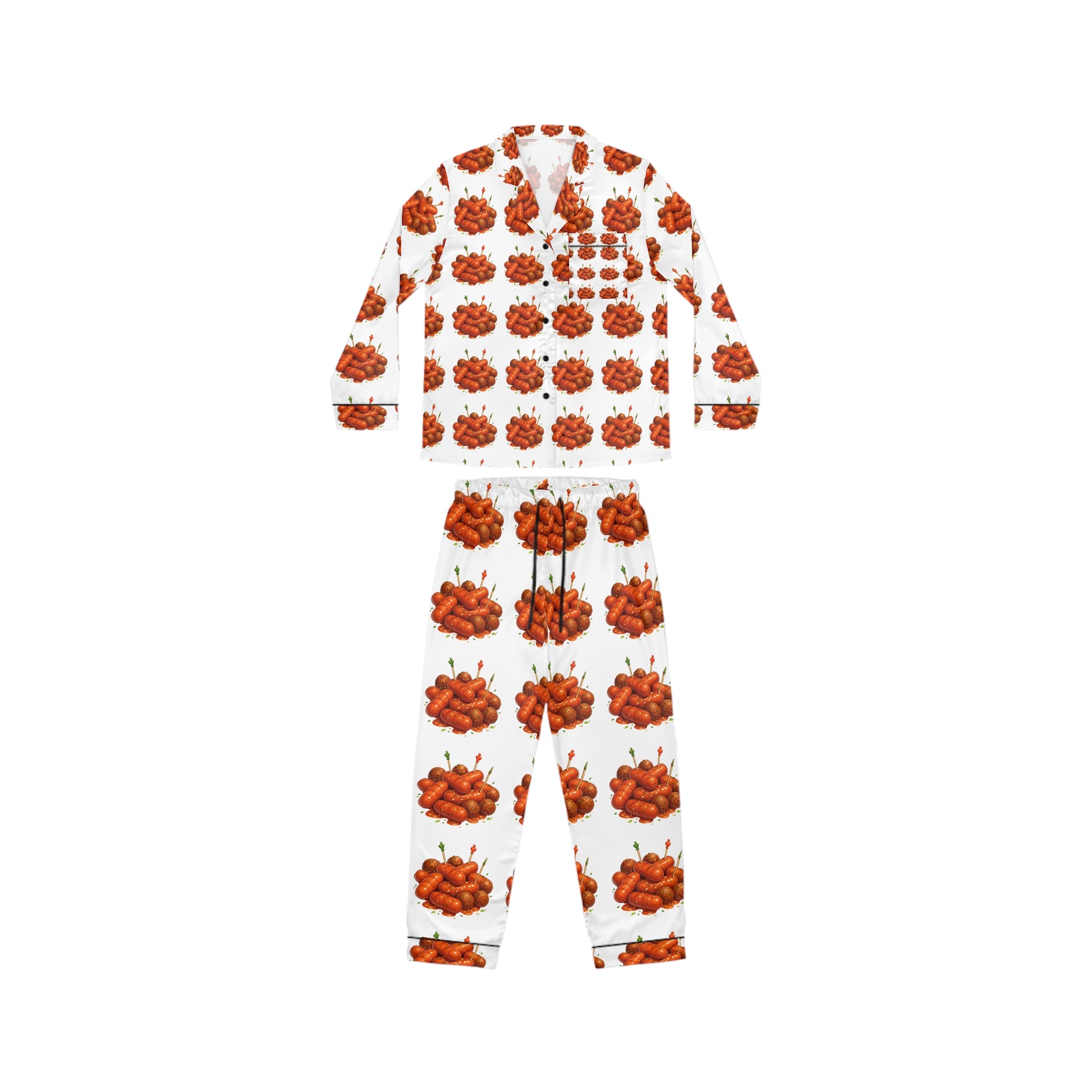 Satin Pajama Set - Cocktail Wiener and Meatball Print