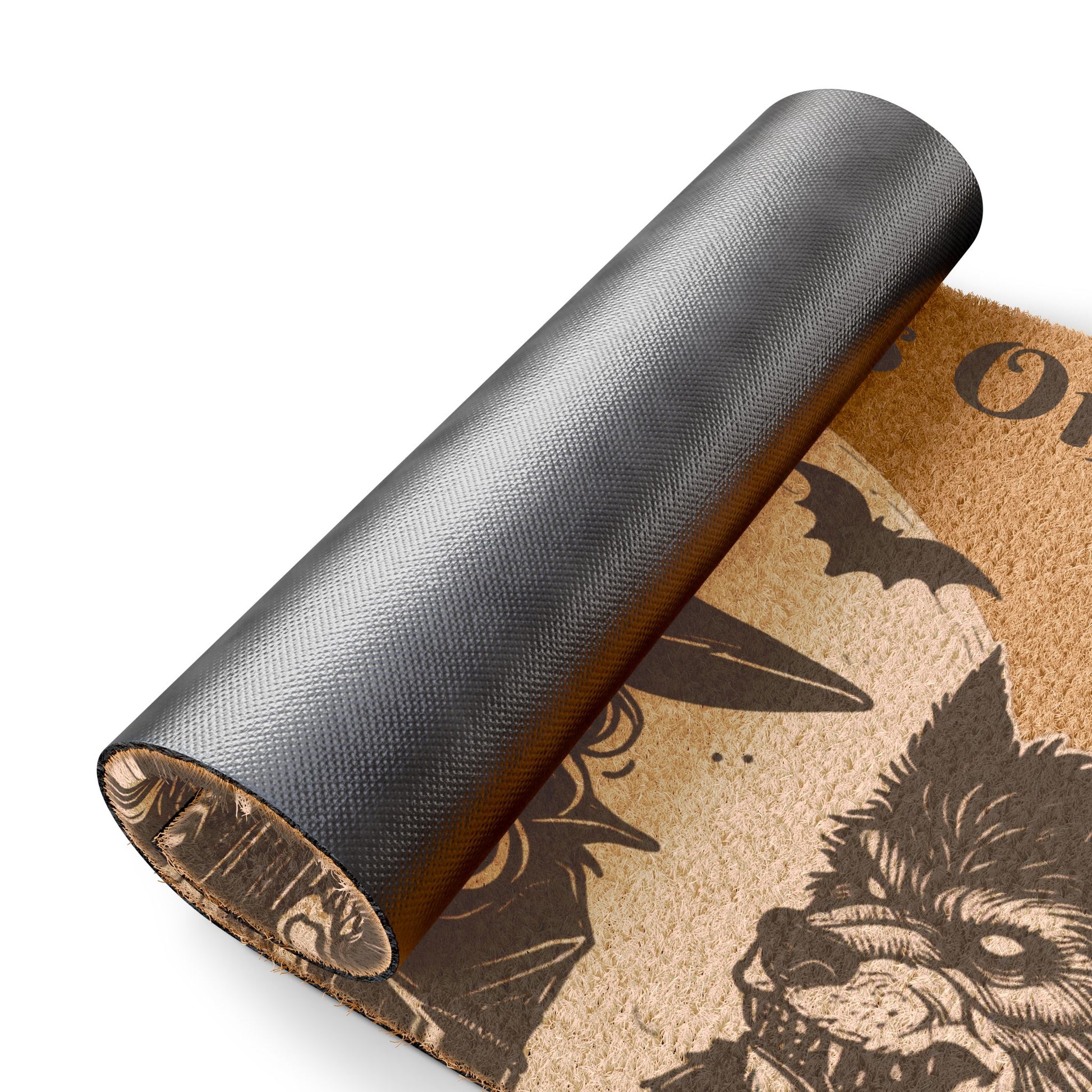 Bring a touch of whimsy and warmth to your doorstep with this charming doormat! Crafted from eco-friendly grade-A coconut coir, it carries an inviting vibe that sets the perfect tone for your home. Whether you're a fan of spooky aesthetics or just love a playful twist, this doormat is perfect for adding personality to your entryway. It's great for Halloween celebrations, themed parties, or simply welcoming family and friends with a wink. Ideal for anyone looking to express their unique style, this doormat is perfect for homeowners, renters, and anyone who loves to entertain during festive seasons. Its durable design ensures it stands up to the elements while making a delightful impression.