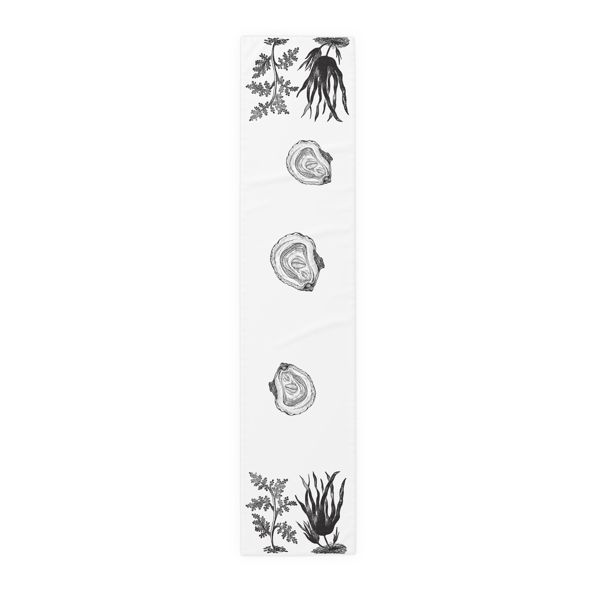 Seaweed and oysters table runner perfect for coastal decor, seafood boils, or just fans of oysters and seaweed. It adds a touch of seaside charm to your dining table and is ideal for beach house gatherings or summer parties. Perfect for seafood lovers and those who enjoy a coastal aesthetic.